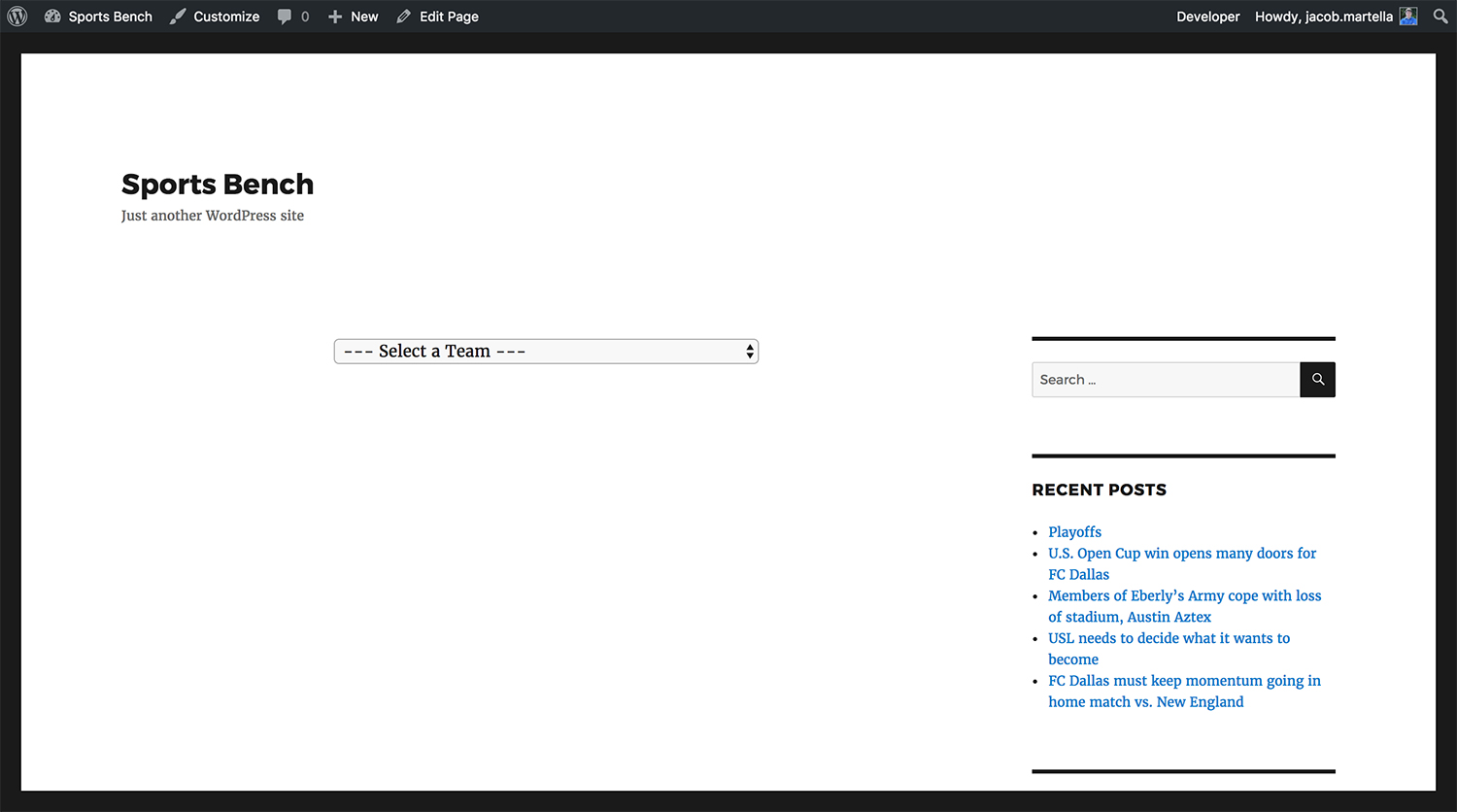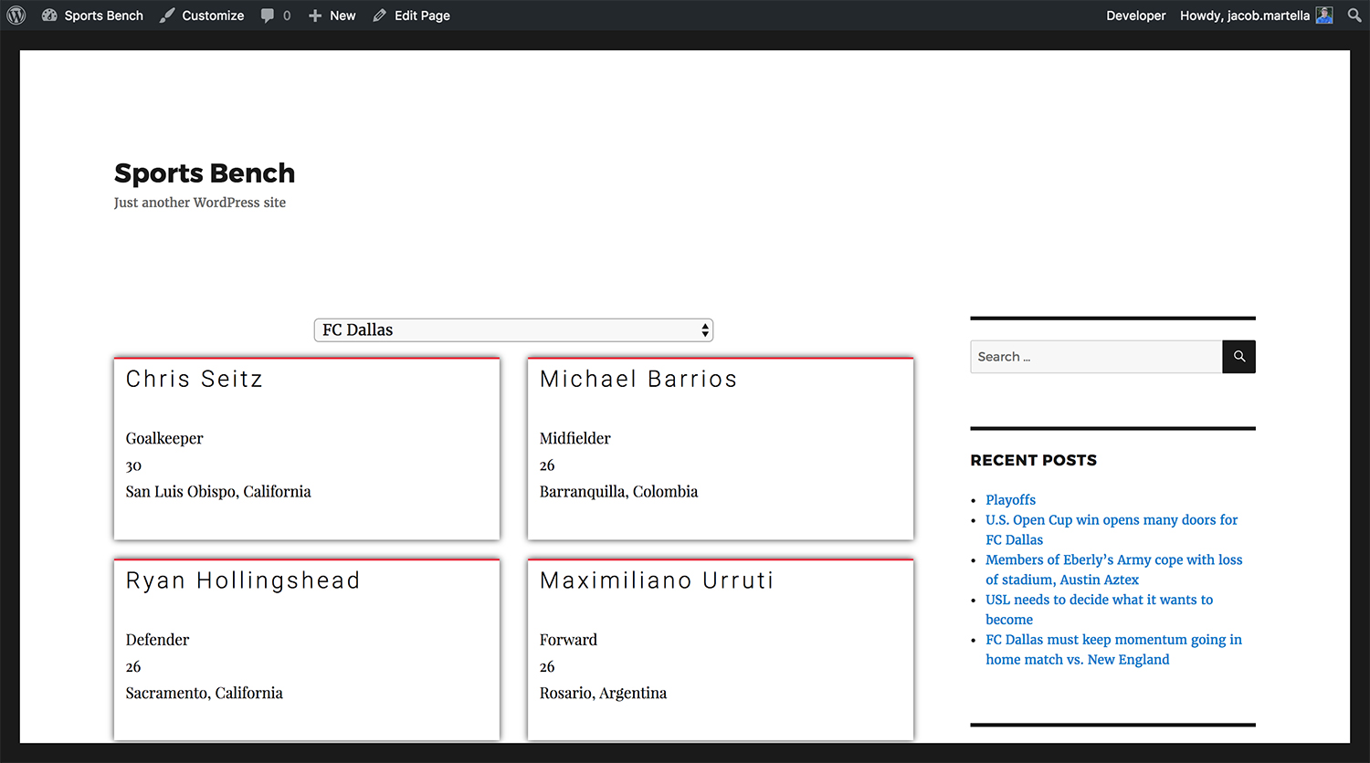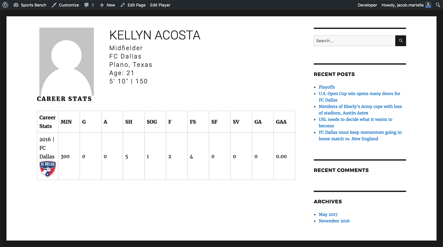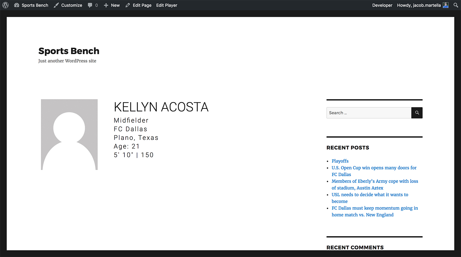 Just a note: I’m using the Twenty Sixteen theme as a baseline and plan to set up the player page like the template included with the Sports Bench theme. You’re obviously free to create yours however you wish.