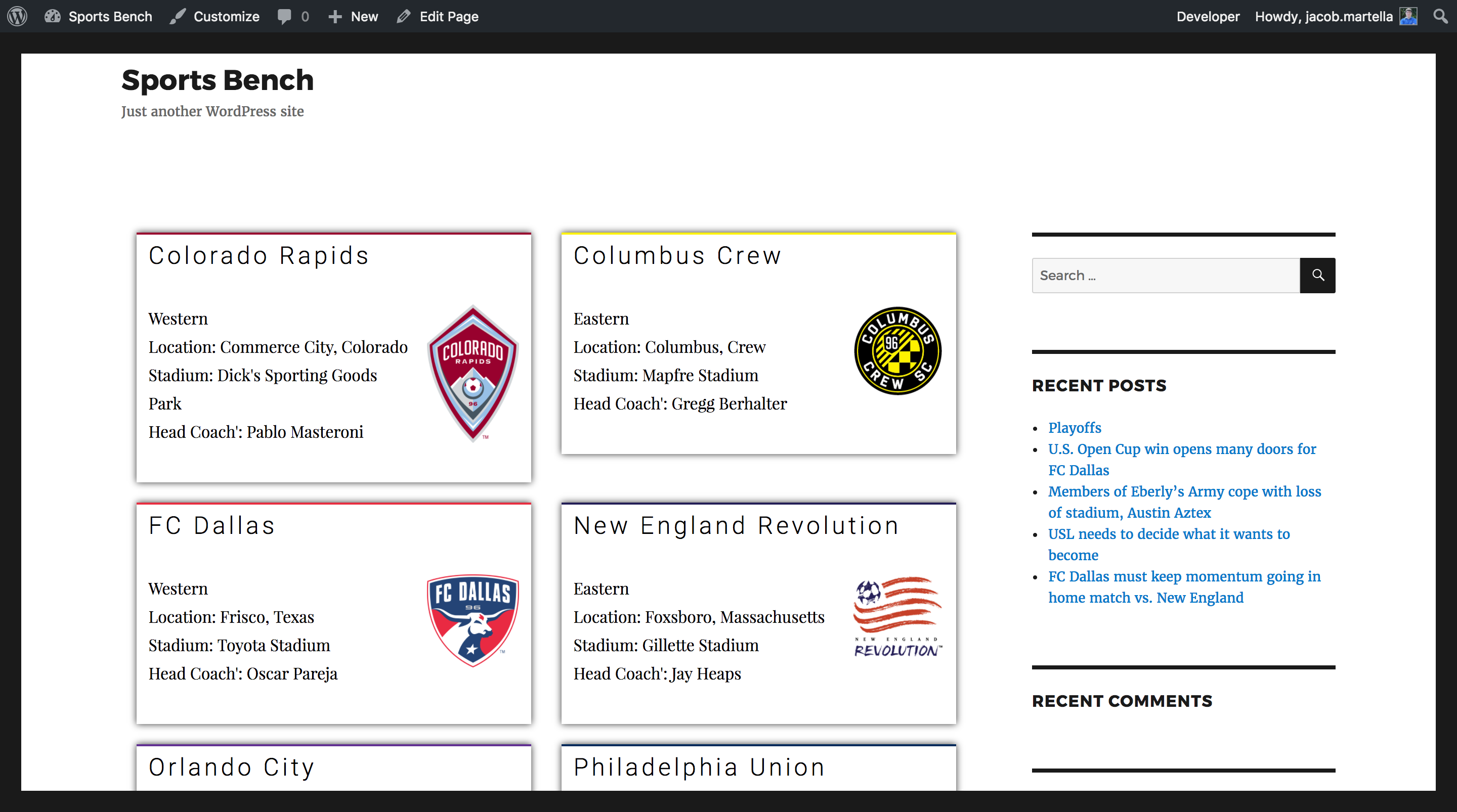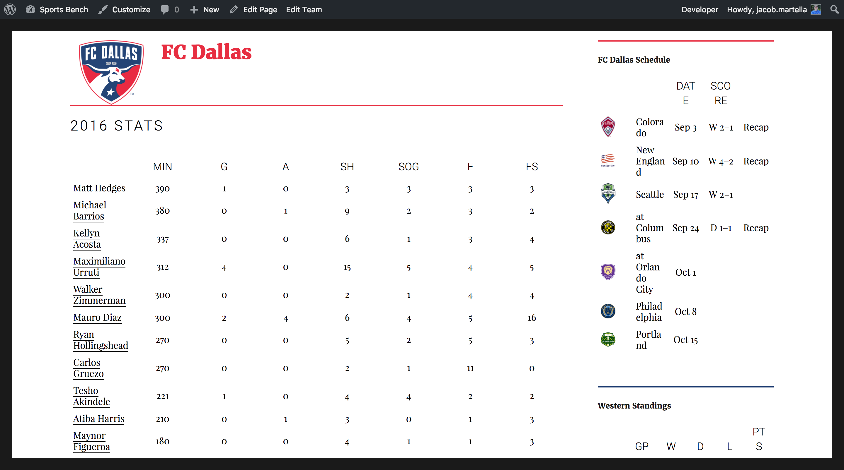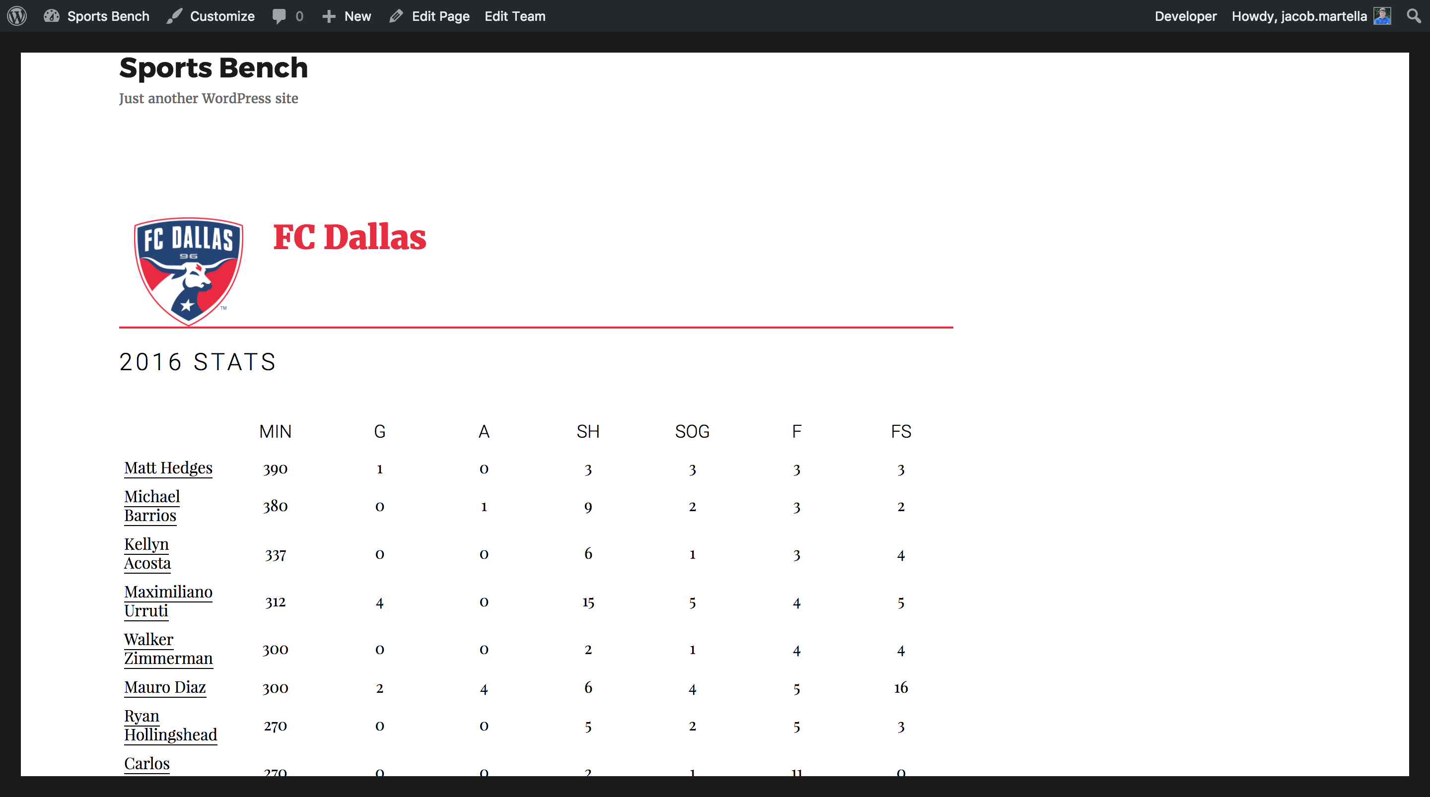 Just a note: I’m using the Twenty Sixteen theme as a baseline and plan to set up the team page like the template included with the Sports Bench theme. You’re obviously free to create yours however you wish.